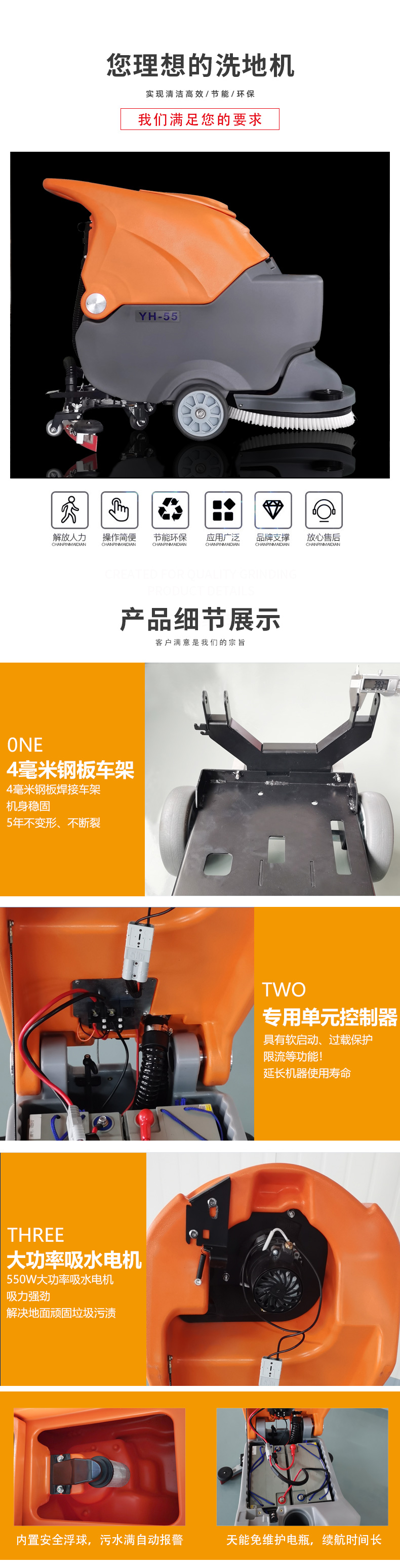 簡(jiǎn)介:YH-55采用2塊100AH品牌超威或安能免維護(hù)電瓶,集灑水、刷地、去污、吸干為一體全自動(dòng)設(shè)備